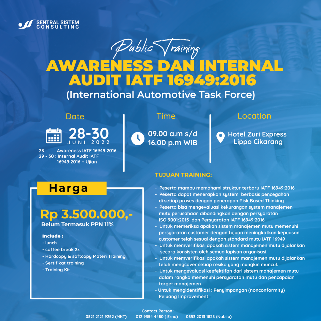 PUBLIC TRAINING AWARENESS & INTERNAL AUDIT IATF 16949:2016